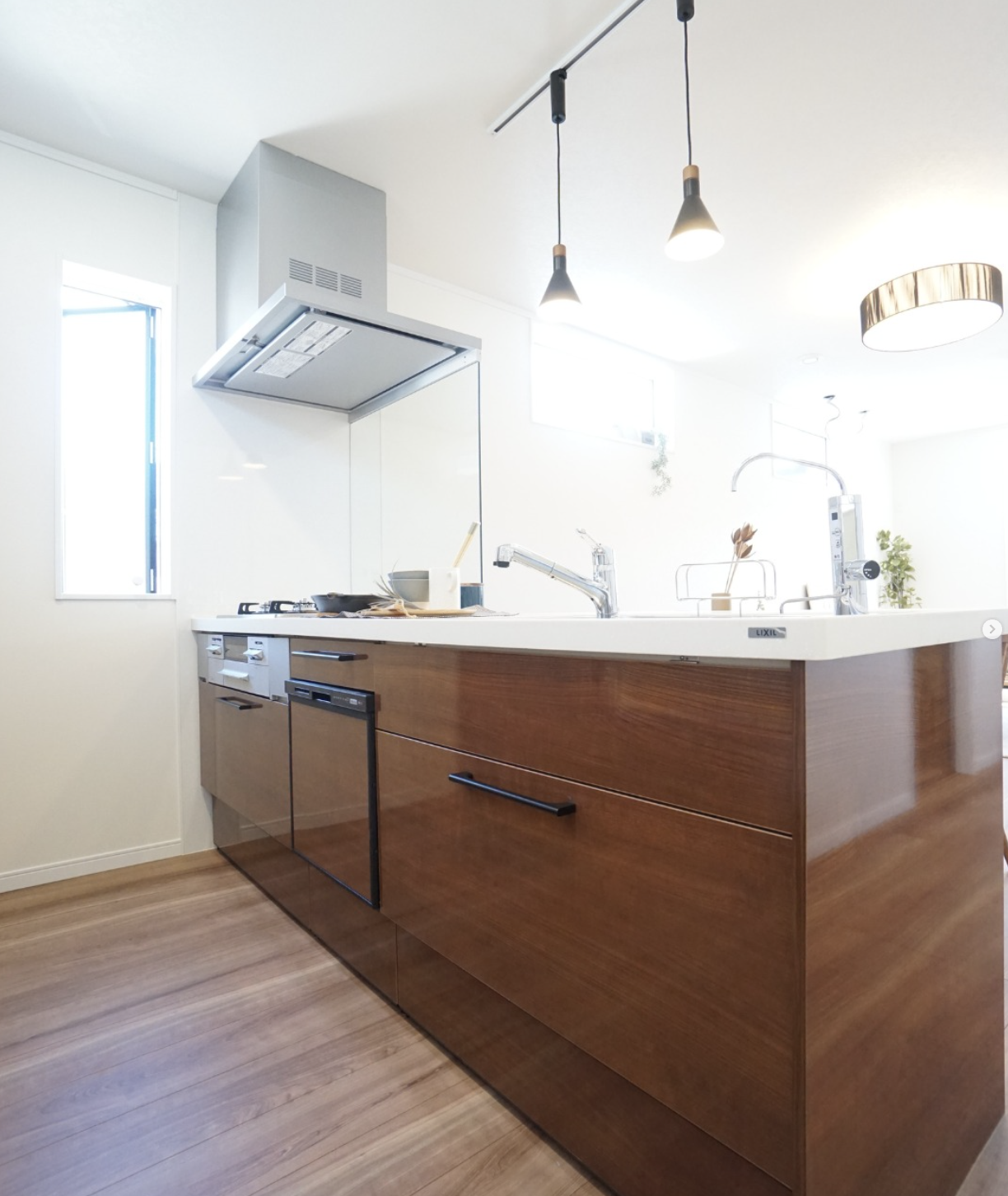 手元をしっかり照らしながら、ダイニングやリビングとのつながりを意識したデザインです。